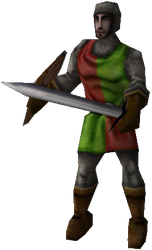The swordman is the basic unit for Magitech's Tech faction. It has low stats, but is cheap and fast to produce. Produced from the barracks, it only has 700 health, but that's more than Magic's daemon unit, though it cannot be produced quite as early. At the start of the game, the swordman is the only melee unit the character has access to until a blacksmith is built. This makes them a building block for later game units (as they can be promoted to a guard) and they help protect the more vulnerable archers from being attacked.
